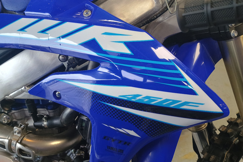 The WR450F boasts a wide range of additional top-spec details carried over from the competition-tested YZ450F including rubber-mounted, four-position adjustable handlebar clamps, aluminum tapered handlebars, compact PVC handlebar pad, wide foot pegs, lightweight throttle cables, quick-adjust clutch perch, toolless air filter access and multi-function switchgear.